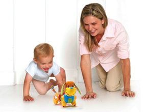 зніміть цю іграшку, коли дитина почне намагатися стати на руки і коліна».