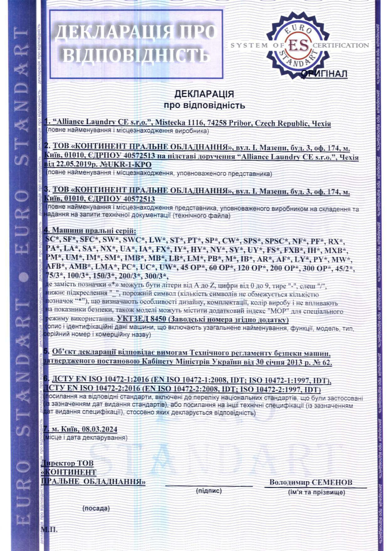 5. Декларацію відповідності СЕ (Declaration of conformity) від виробника.
