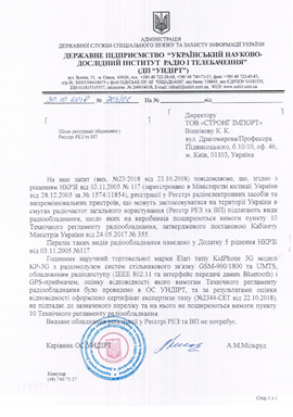 - Інструкція українською мовою (обов'язково повинна мати інформацію про вимоги безпеки, смуги радіочастот, в яких працює радіообладнання та про максимальну потужність випромінювання у вказаних смугах радіочастот).